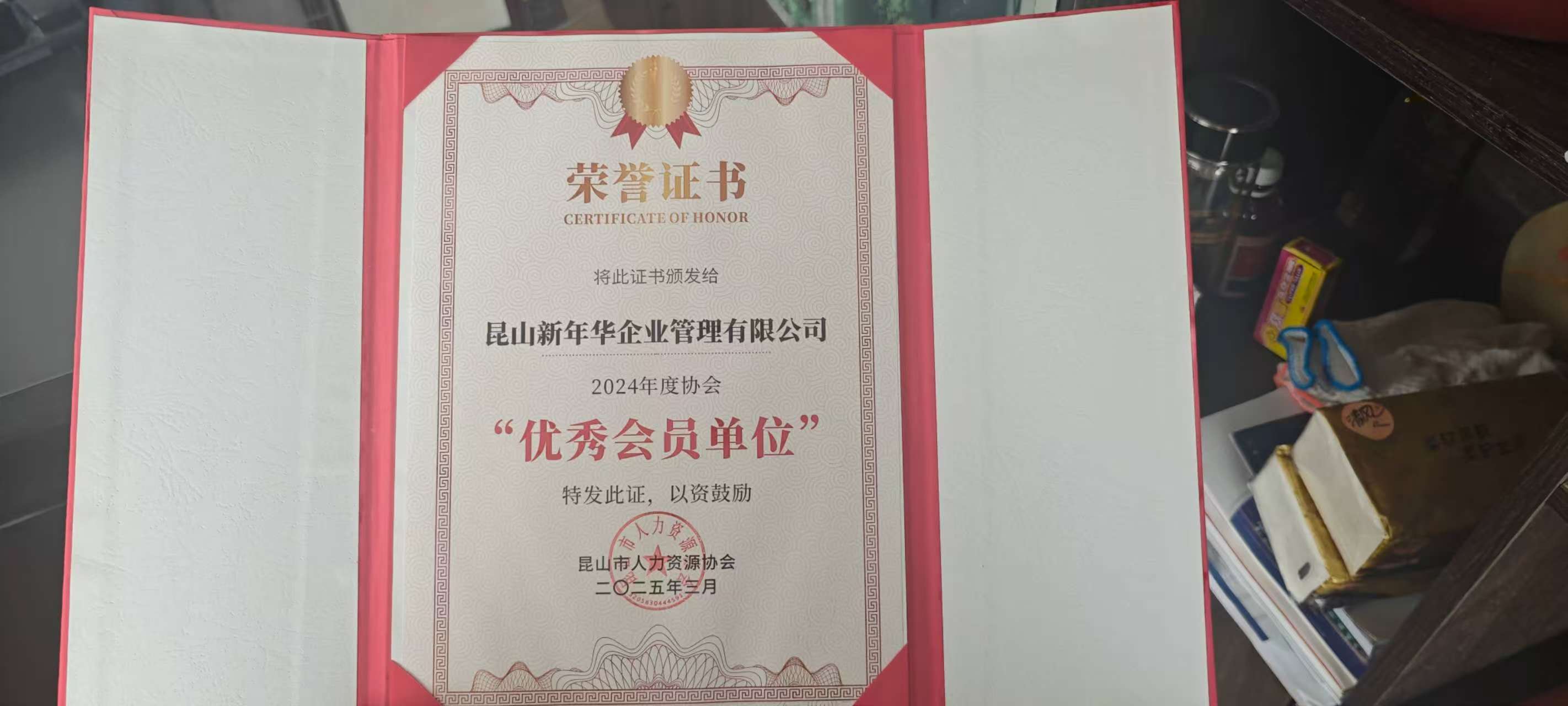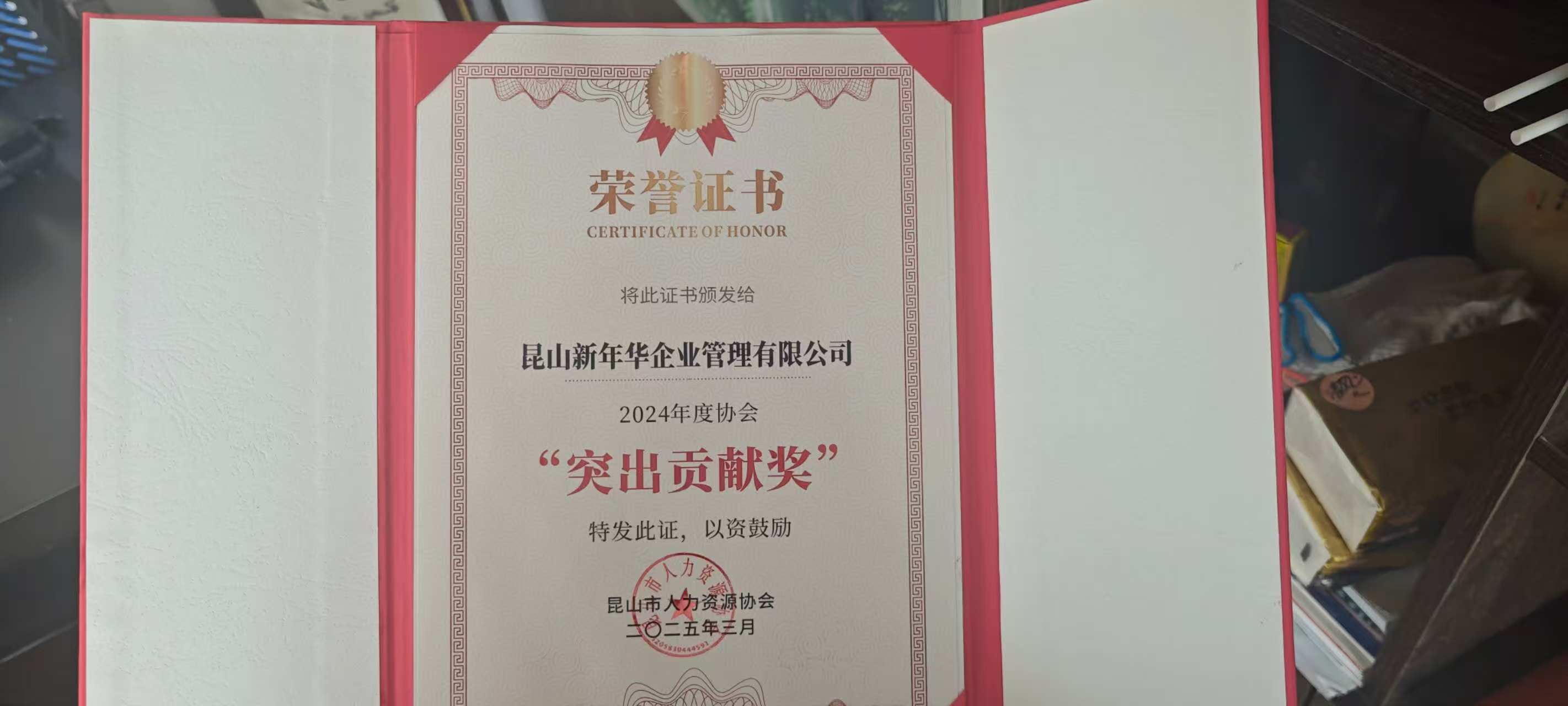 与此同时,在昆山市人力资源协会组织的年度表彰大会上,新年华人力资源还荣获 “年度协会突出贡献奖” 及 “优秀会员单位” 两项殊荣。