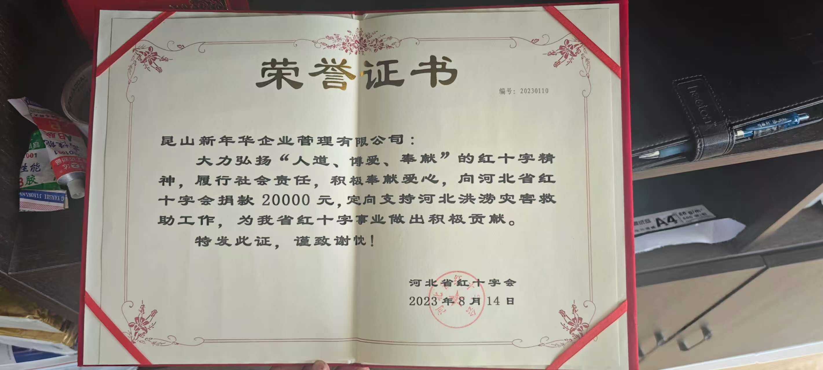 除了持续的专业服务,新年华人力资源还始终践行企业社会责任。今年,公司主动参与公益捐赠活动,向相关慈善项目捐款 人民币两万元整,并获得协会颁发的 “爱心企业荣誉证书”。